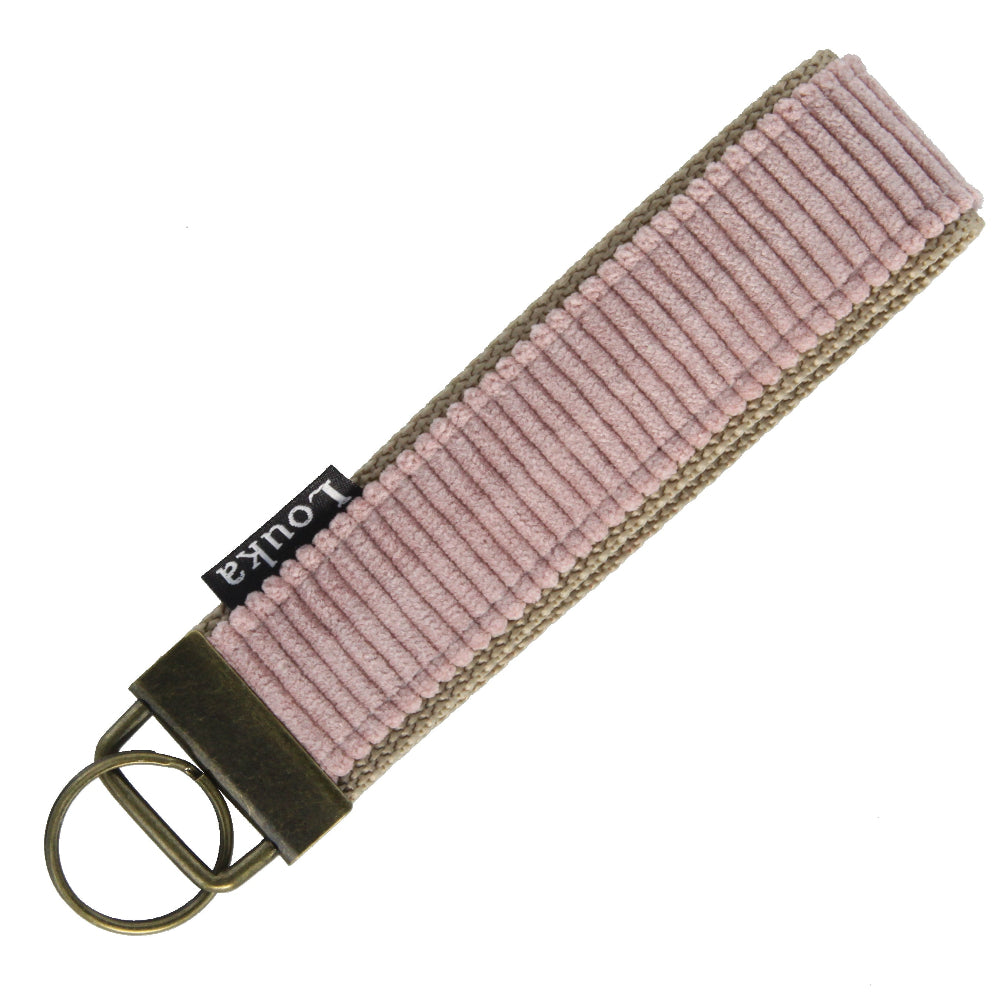 Deze Louka pols sleutelhanger rib oud roze is zacht, stijlvol en tijdloos. De ribstof geeft een luxe structuur en de oudroze kleur zorgt voor een warme, rustige uitstraling die overal bij past.